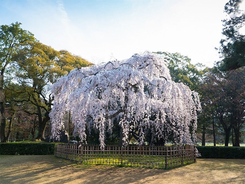 Los cerezos shidarezakura situados cerca de la antigua residencia Konoetei.