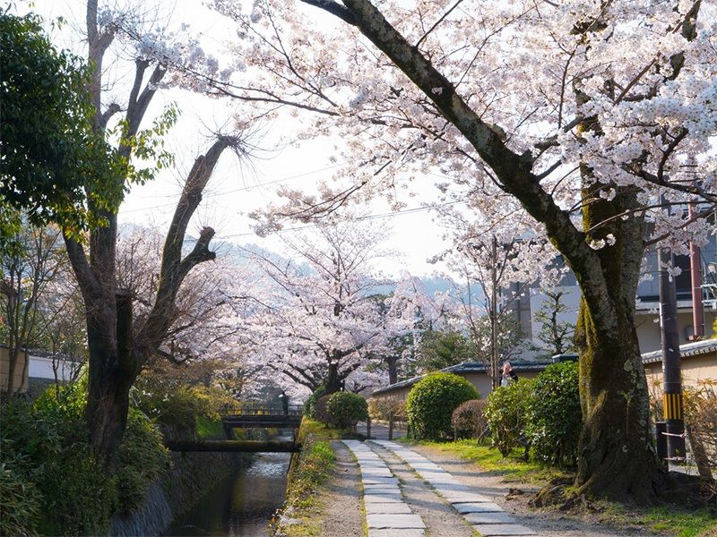Los cerezos a lo largo del famoso camino que lleva del Santuario de Kumano Nyakuōji al Ginkakuji crean un túnel de sakura de un kilómetro y medio.