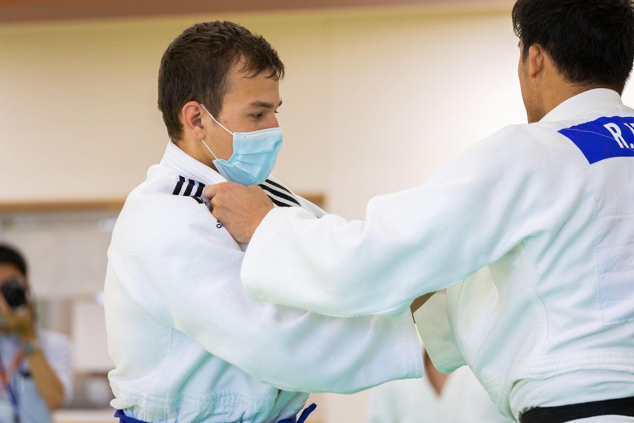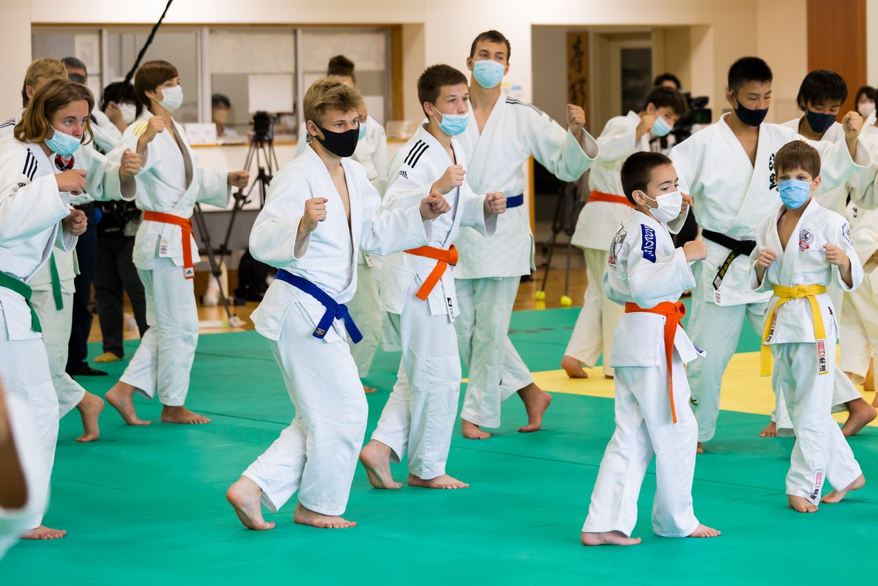 Los participantes fueron 12 menores de entre 10 y 16 años y dos entrenadores que pertenecen a un club de judo en la ciudad de Odesa. En el lado japonés, además de la escuela secundaria e instituto Asano, también participaron miembros de los clubes de judo del instituto Keiō Gijuku y del instituto Zushi Kaisei. Después de calentar con la práctica básica bajo la dirección de Inoue, Haga demostró su especialidad, la técnica de lanzamiento conocida como uchimata. Tras las detalladas explicaciones sobre cómo mover los brazos, las piernas y cómo mirar al adversario, los niños ucranianos y los estudiantes de instituto japoneses formaron parejas y practicaron las técnicas entre sí.
