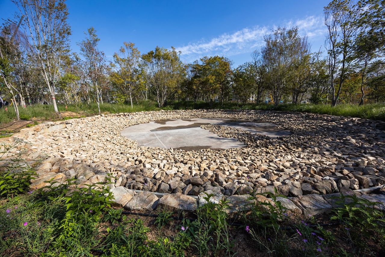 El Bosque de la Tranquilidad, con un estanque de 20 metros de diámetro y 1.500 árboles plantados a su alrededor.