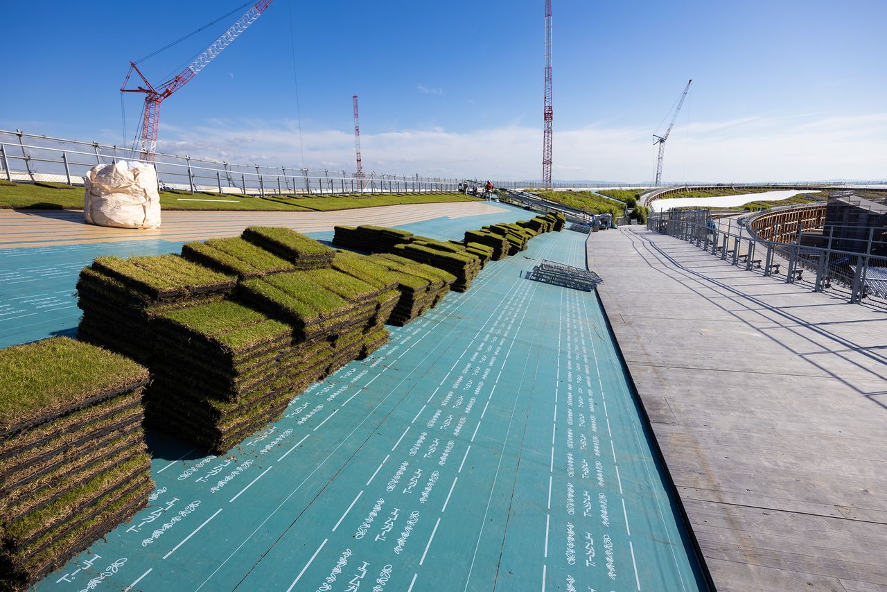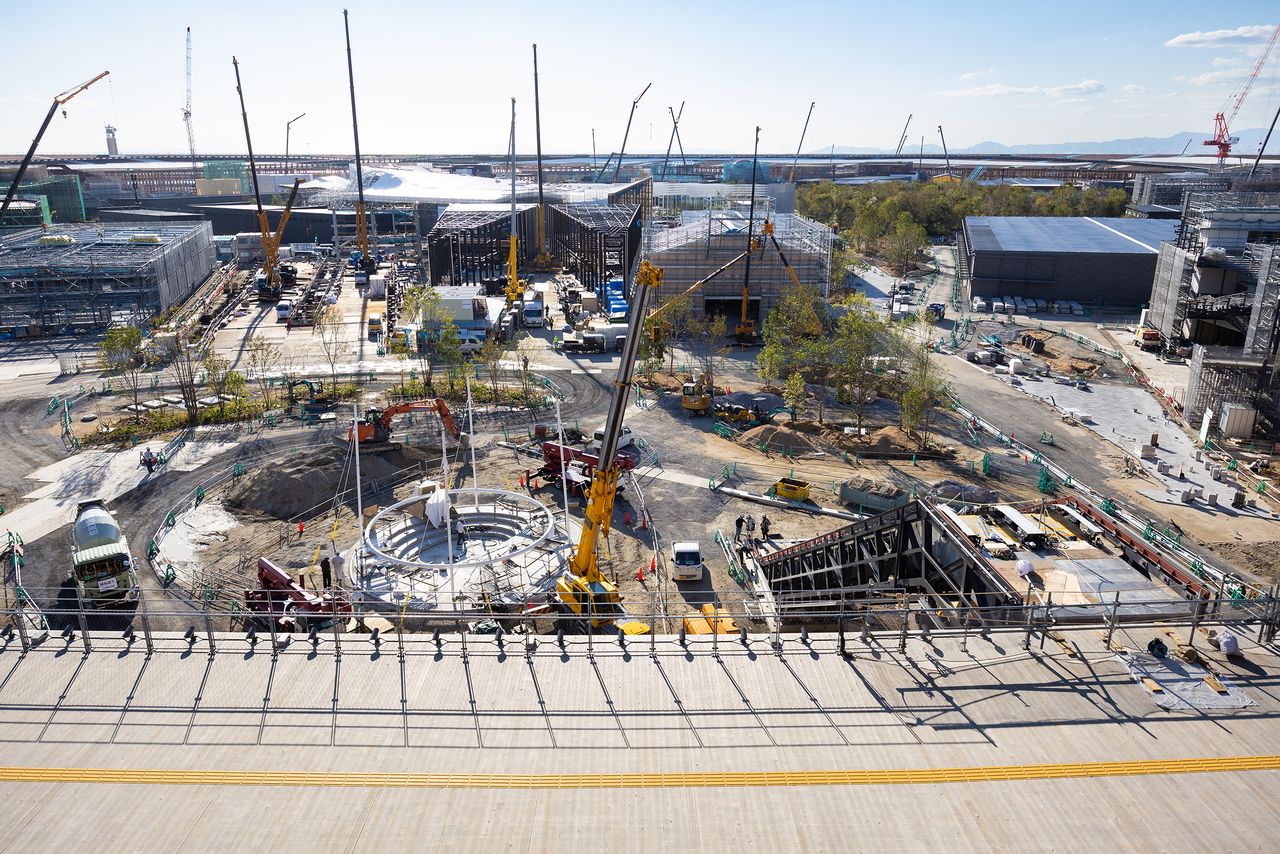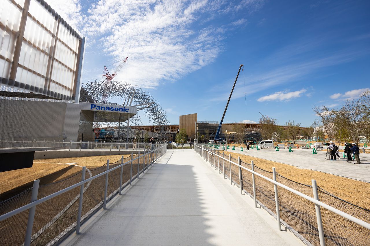 También se está trabajando en la instalación de escaleras mecánicas y ascensores, y en la plantación de árboles en el Anillo del Gran Tejado, una de las estructuras de madera más grandes del mundo, que será el símbolo de la Expo. A finales de agosto, cuando se conectó todo el perímetro de dos kilómetros, no había más que armazones de acero y tierra desnuda en los alrededores, pero en el mes transcurrido desde entonces la plantación y la pavimentación han progresado, y ya es posible imaginar cómo se convertirá la zona en un espacio tranquilo y relajante.