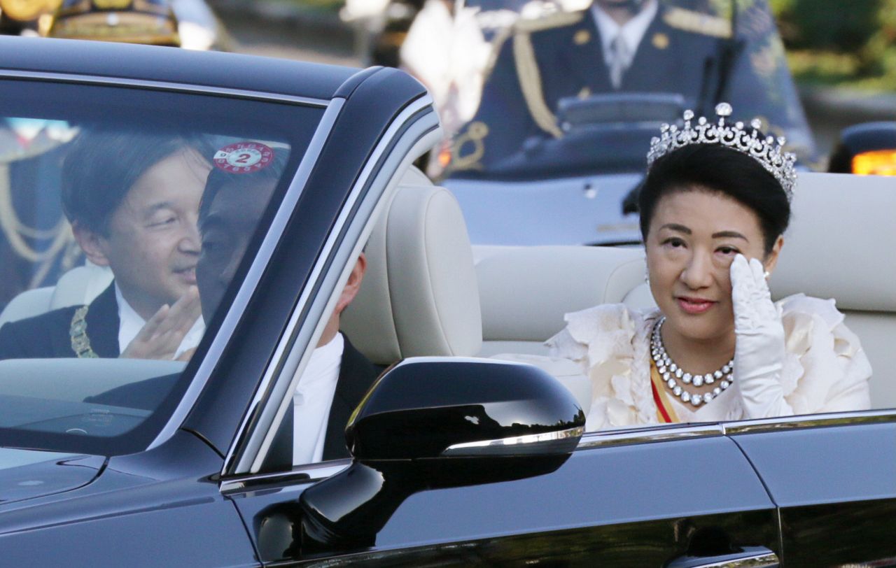 La Emperatriz se mostró emocionada en un momento del desfile mientras el vehículo pasaba delante de la Dieta Nacional. (Jiji)