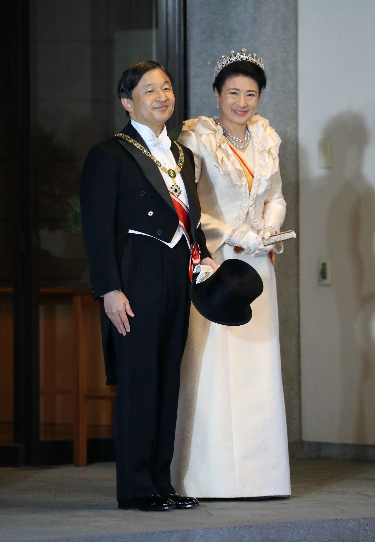 El Emperador y la Emperatriz tras finalizar el desfile, en la puerta del Palacio de Akasaka situado en el distrito de Minato. (Fotografía oficial, Jiji)