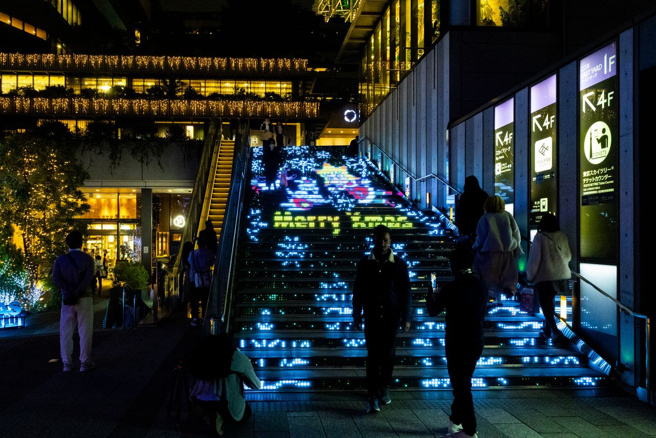 Tokyo Skytree Town se transforma gracias a más de 500.000 luces LED que iluminan cada rincón del complejo entre las 16:00 de la tarde y hasta las 23:00 de la noche. La escalera de acceso a Solamachi, el centro comercial a los pies de la torre, se convierte en una pantalla gigante donde se proyectan animaciones y efectos luminosos que simulan una alfombra roja y coloridas decoraciones navideñas. Además, Sorakara-chan participa en el espectáculo para deleite de grandes y pequeños.