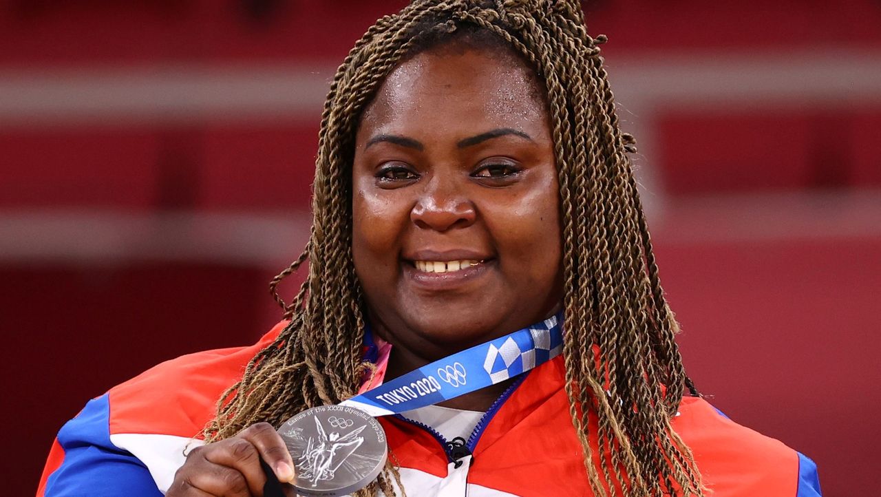 Foto del viernes de la cubana Idalys Ortiz posando con su medalla de plata en la prueba de más de 78 kilos de los Juegos de Tokio.