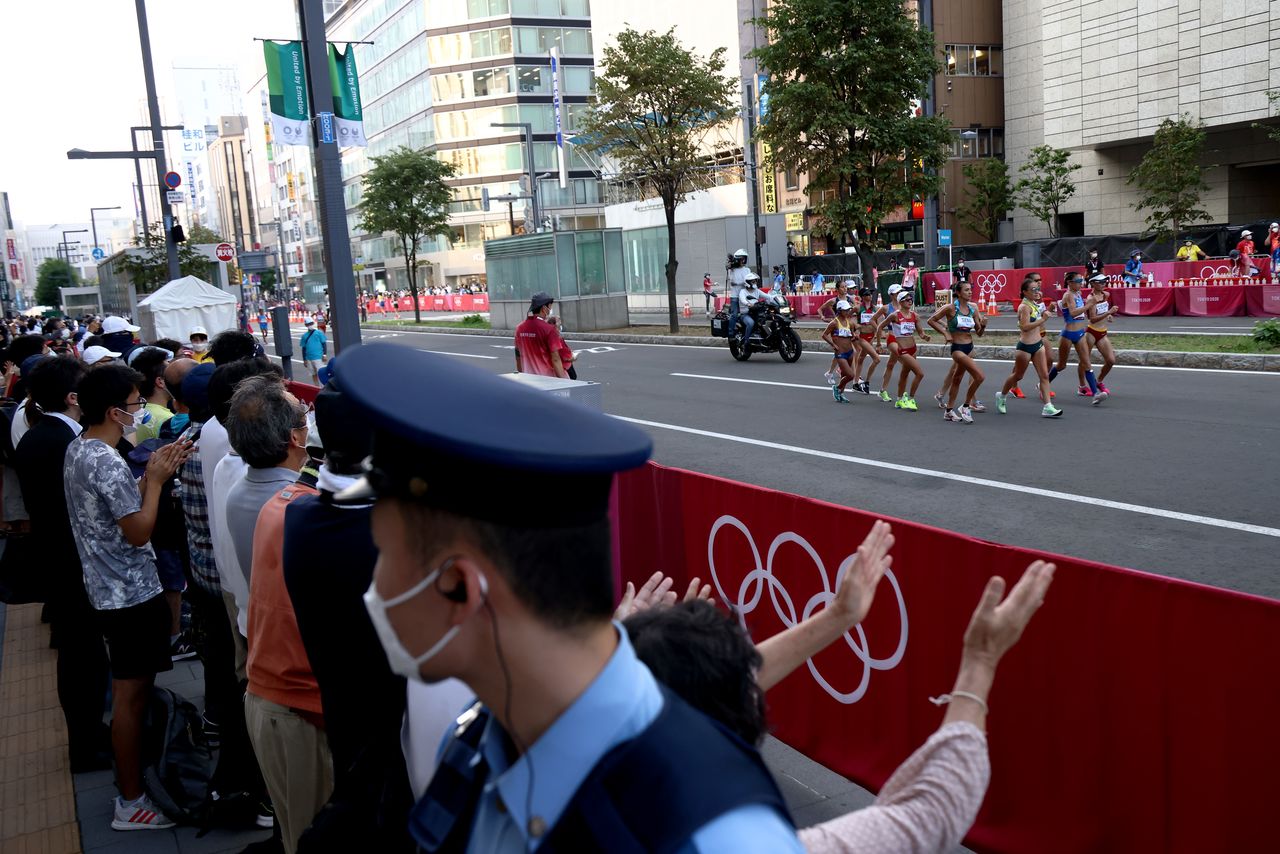 Foto ilustrativa del viernes de espectadores mirando la prueba de marcha femenina de 20 kms en los Juegos de Tokio.