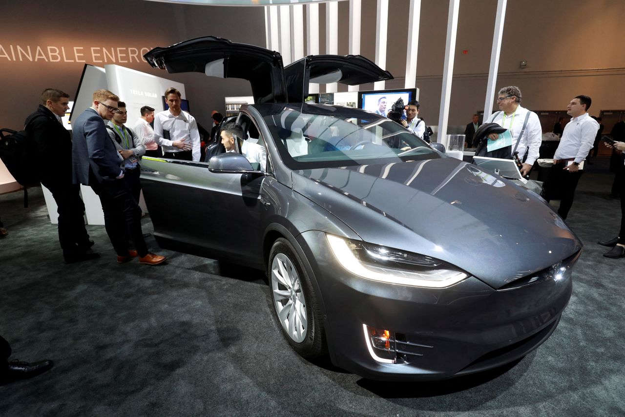Imagen de archivo de visitantes mirando un Tesla Model X que utiliza baterías Panasonic en el Las Vegas Convention Center durante la CES 2018 en Las Vegas, Nevada, Estados Unidos. 9 de enero, 2018. REUTERS/Steve Marcus/Archivo