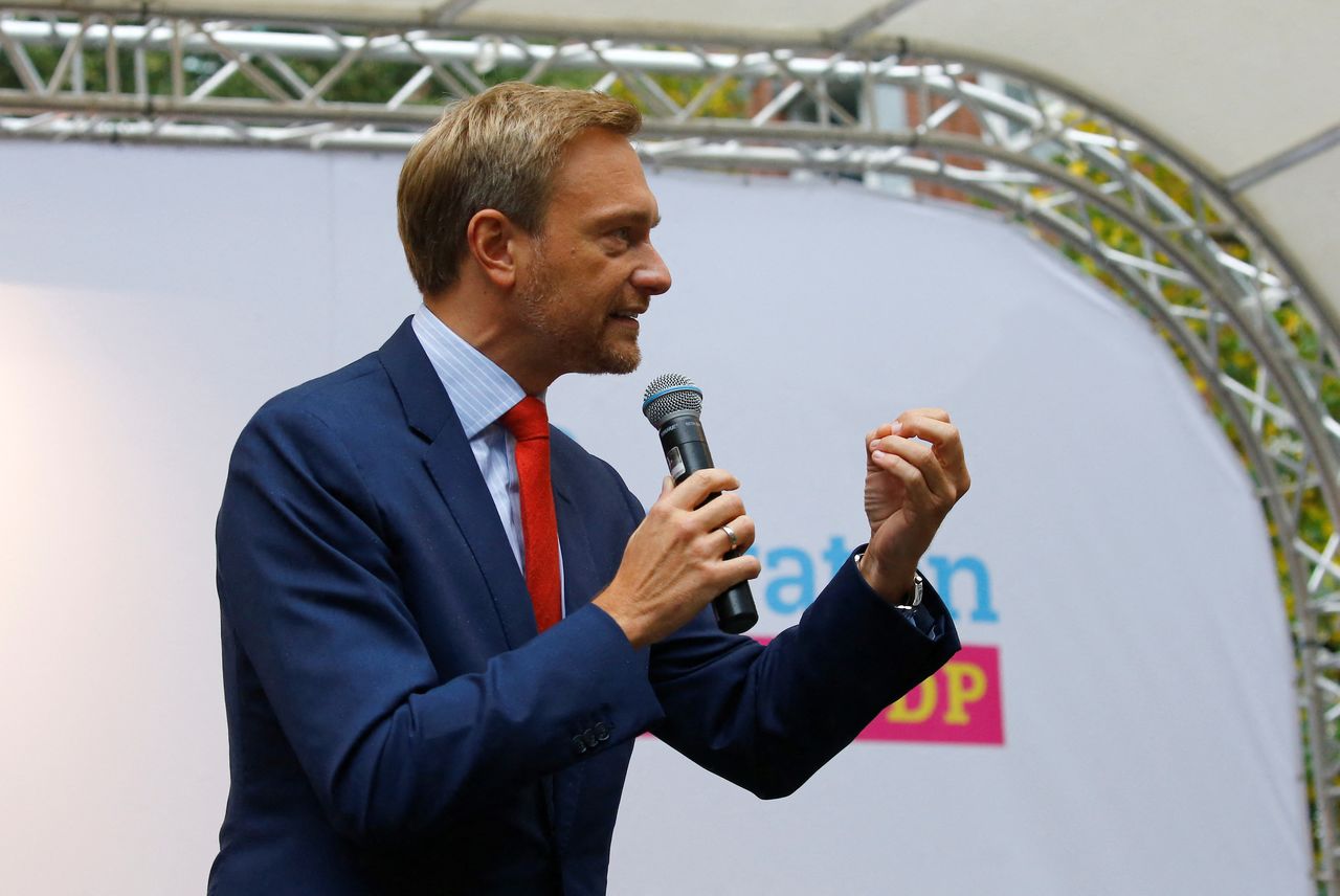 FOTO DE ARCHIVO: El líder de los Demócratas Libres (FDP) de Alemania, Christian Lindner, da un discurso mientras hace campaña en Hamburgo, Alemania, el 8 de septiembre de 2017. REUTERS/Morris Mac Matzen