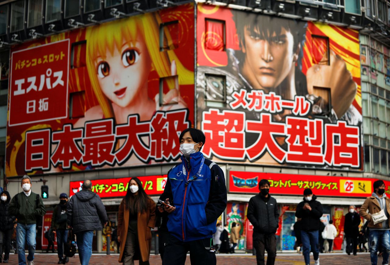 People wearing protective face masks walk on the street, amid the coronavirus disease (COVID-19) pandemic, in Tokyo, Japan January 19, 2022. REUTERS/Issei Kato