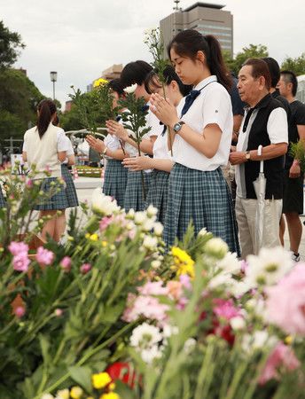 A las 8:15 a.m., hora a la que la bomba atómica fue lanzada sobre Hiroshima el 6 de agosto de 1945, varios representantes, incluyendo familiares de las víctimas, hicieron sonar la Campana de la Paz, y los participantes rezaron en silencio durante un minuto.