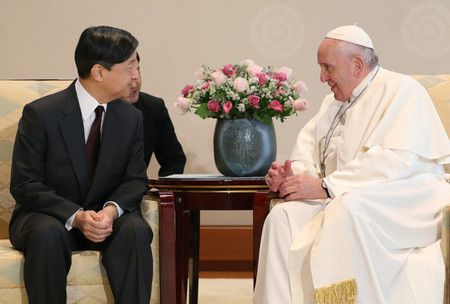 Cuando se encontraba estudiando en el Reino Unido en 1984, el Emperador Naruhito, entonces príncipe heredero, visitó la Ciudad del Vaticano y tuvo una audiencia con el papa Juan Pablo II. Es la primera vez que el Emperador Naruhito se reúne con el papa Francisco, que llegó a Japón el sábado en su primera visita al país.