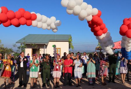 Lay Kay Kaw, Myanmar, 28 de noviembre (Jiji Press)— El miércoles se celebró una ceremonia en el este de Myanmar para conmemorar la finalización de las obras de 2.900 casas edificadas bajo un proyecto de la Fundación Nippon para la ayuda a la reconstrucción. Estas viviendas se convertirán en el hogar de muchos refugiados y otras víctimas de los conflictos étnicos en el país del Sudeste Asiático.