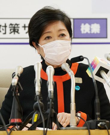 La gobernadora de Tokio Koike Yuriko durante una rueda de prensa en la tarde del 6 de abril.