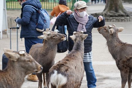 Nara, 10 de noviembre (Jiji Press)—El declive en el número de visitantes en el Parque Nara debido a la epidemia del nuevo coronavirus ha provocado cambios en el comportamiento de los ciervos que suelen estar en esta zona del oeste de Japón.