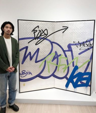 Takahashi creó un cuadro al estilo del arte callejero en un biombo cubierto de pan de plata utilizando pigmentos naturales hechos de minerales pulverizados, usados en las pinturas de estilo japonés, así como cola natural.