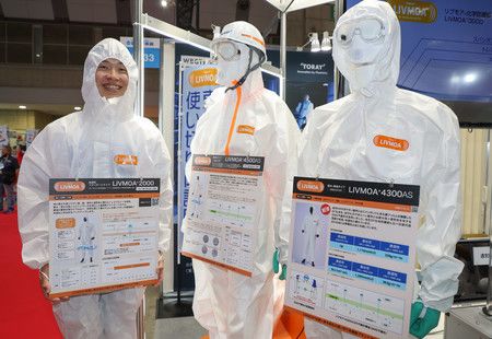La empresa textil Toray Industries Inc. mostró prendas de protección impermeables y transpirables al mismo tiempo. La empresa desarrolló el producto porque las personas que realizaban labores de descontaminación en la central nuclear de Fukushima Dai-ichi, donde tuvo lugar un grave accidente en 2011, tuvieron que soportar el sudor y la mala ventilación durante su trabajo con trajes protectores. Toray espera que su ropa protectora ayude a crear entornos seguros y cómodos para diversos trabajadores, como los que aplican medidas contra las dioxinas y los que reparan equipos.