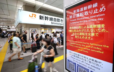En la tarde del jueves, JR Tōkai suspendió parcialmente las operaciones de la línea Tōkaidō Shinkansen al comprobar que se había alcanzado el límite en el pluviómetro en la prefectura de Shizuoka. Más tarde, anunció la cancelación de las operaciones en dicha línea para el resto del día e informó que no había perspectivas de que amainaran las lluvias torrenciales.