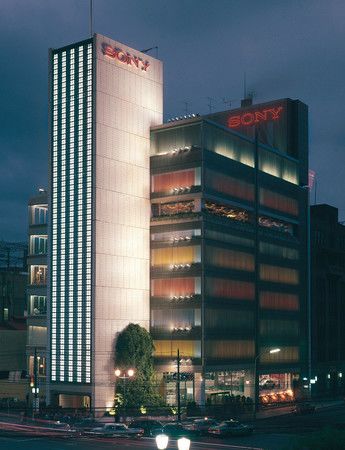 El edificio original de Sony, una idea del cofundador de la empresa, Morita Akio, se inauguró en 1966 y se utilizó como sala de exposiciones para los productos de la empresa. Un espacio de unos 33 metros cuadrados en la esquina del cruce de Sukiyabashi, llamado “el Jardín de Ginza” por Morita, se dejó libre como espacio público para que pudiera utilizarse para diversos eventos.