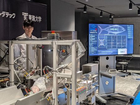 Tokio, 10 de abril (Jiji Press)—Fujitsu Ltd. y otros han desarrollado un dispositivo que ser sirve de la tecnología de inteligencia artificial para analizar el contenido de grasa en el atún de aleta larga (Thunnus alalunga) congelado, un indicador ampliamente utilizado para determinar cómo de sabroso es el pescado.