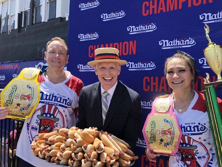 En la categoría masculina, Joey Chestnut, de 41 años, obtuvo su decimoséptimo título al ingerir 70 hot dogs y medio en 10 minutos, dejando muy atrás al resto de los participantes. Fue su primer triunfo en dos años, tras haberse ausentado en la edición anterior.