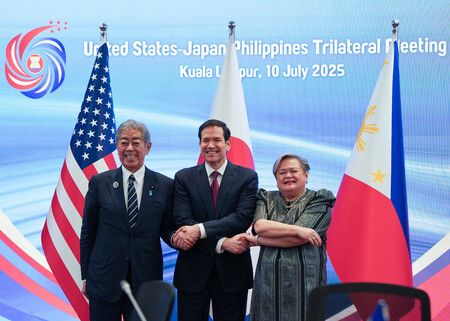 El ministro de Asuntos Exteriores de Japón, Iwaya Takeshi; el secretario de Estado de EE. UU., Marco Rubio; y la secretaria de Asuntos Exteriores de Filipinas, Theresa Lazaro, compartieron esta postura en una discusión sobre la situación en los mares de China Oriental y China Meridional durante una reunión celebrada el jueves en Kuala Lumpur, en un momento en el que China está incrementando sus movimientos hegemónicos en la región.