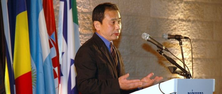 Murakami Haruki pronuncia su discurso de aceptación del Premio Jerusalén por la Libertad del Individuo en la Sociedad de 2009.© Jiji