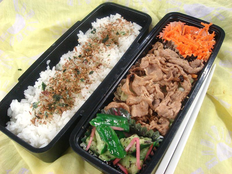 Las fiambreras con carne de cerdo frita con jengibre son muy comunes entre los que disfrutan de un almuerzo sustancioso. De sencilla preparación, el shōgayaki es una elección clásica tanto para los que suelen llevar la comida en bolsas de papel marrón como para los sibaritas de los almuerzos despachados en tiendas de conveniencia y establecimientos de bentō.