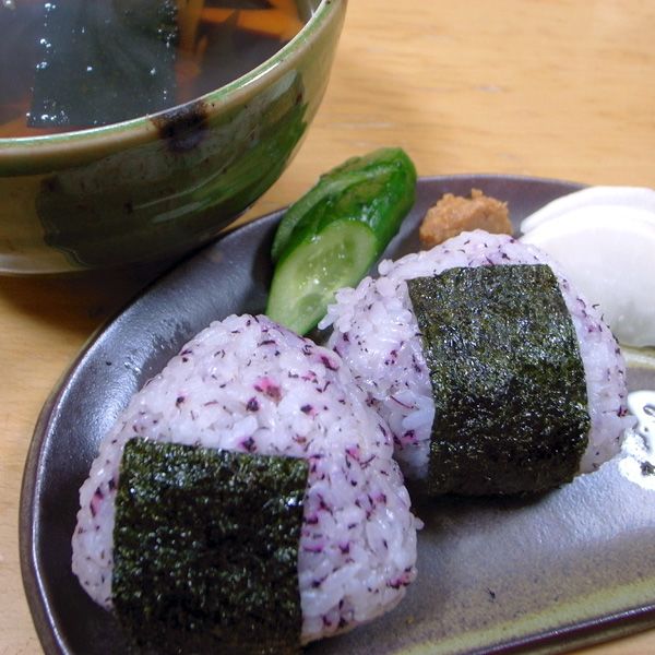 Aunque no son estrictamente bentō, las bolas de arroz son tal vez el tentempié más versátil de Japón. También conocidas como onigiri, pueden encajar en cualquier lugar sin problemas y ser engullidas con la misma velocidad. A menudo se presentan envueltas en láminas de nori (alga marina) o espolvoreadas con gomashio (semillas de sésamo y sal). El gu, o relleno más común, suele estar hecho de salmón a la parrilla, umeboshi, kombu (algas), huevas de pescado y atún mezclado con mayonesa.