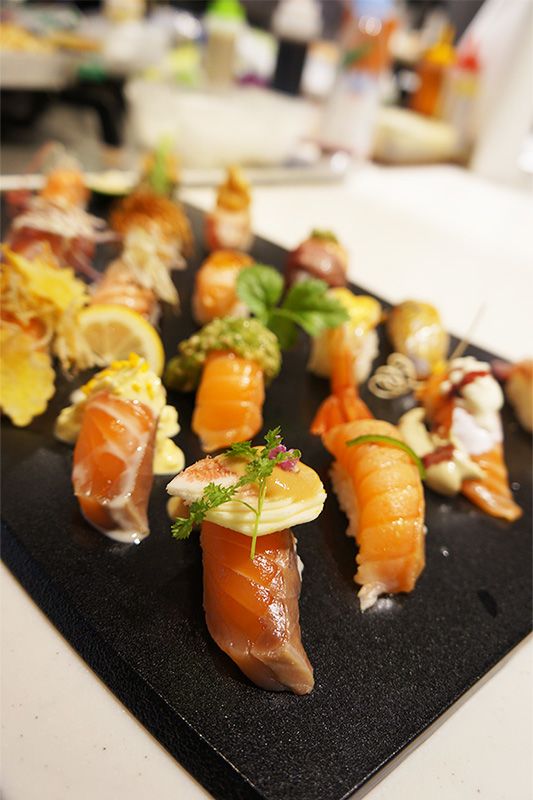 (Fotografía del encabezado: un competidor da los últimos retoques a su creación en la sección de sushi creativo de la competición.)sushi Noruega salmón Global Sushi Challenge sushi edomae sushi creativo