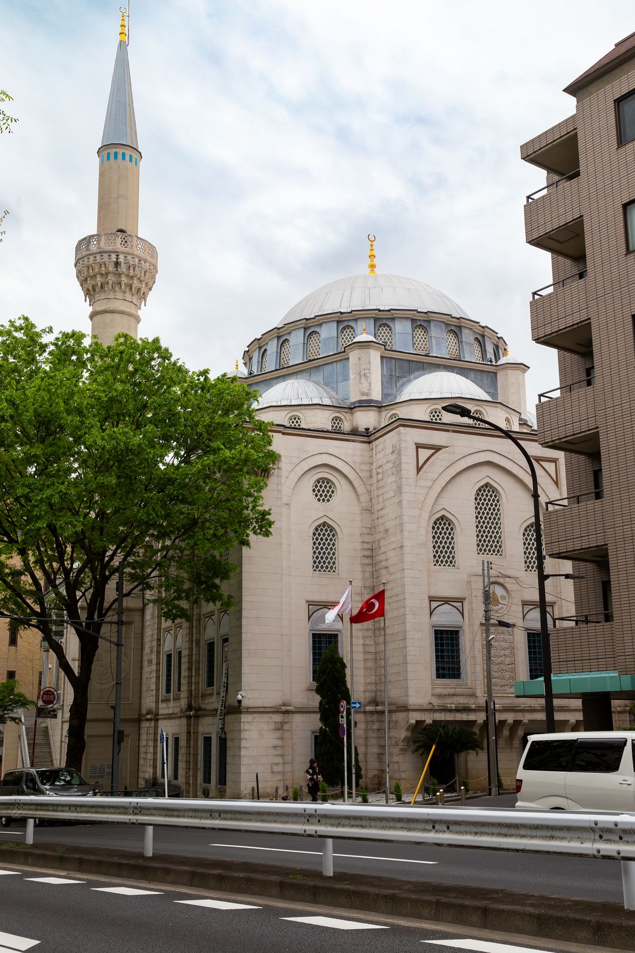 En una tranquila zona residencial del distrito tokiota de Shibuya, hay un edificio que llama mucho la atención debido a su altísimo minarete y su gran cúpula. Se trata de la Tokyo Camii, una mezquita de estilo turco otomano. La visitan también una buena cantidad de personas no musulmanas y muchas mujeres jóvenes se hacen fotos en ella y las publican en las redes sociales. Dispone de una tienda que vende productos halal (elaborados siguiendo los preceptos del islam) y, en general, goza de una buena afluencia de público.