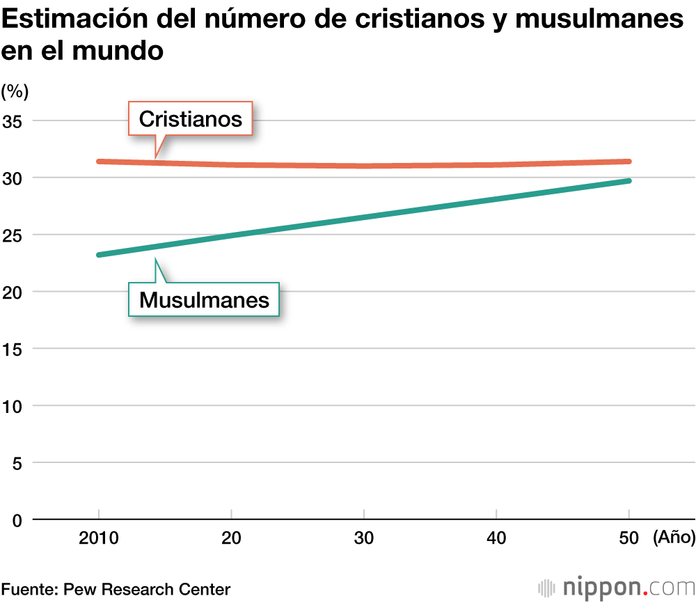 El número de practicantes del islam está aumentando a nivel mundial. Según una estimación publicada en diciembre de 2022 por la entidad investigadora estadounidense Pew Research Center, en 2020 había 2.380 millones (el 31,1 % de la población mundial) de cristianos y 1.907 millones (el 24,9 % de la población mundial) de musulmanes en el mundo. Se estima que para 2050 las cifras serán más similares, con 2.918 millones de cristianos (31,4 %) y 2.761 millones de musulmanes (29,7 %). (*1)