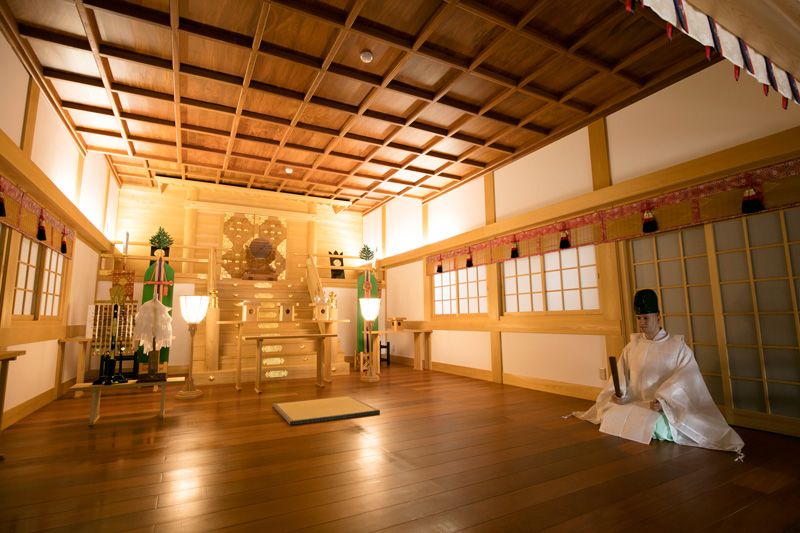 Fotografía de la cabecera: Florian Wiltschko, posa, con la vestimenta formal propia de los sacerdotes sintoístas, en la sala para rezar del santuario Nobeno.