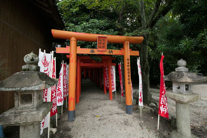 Vista del pabellón principal del santuario Nobeno desde el torii del sur.