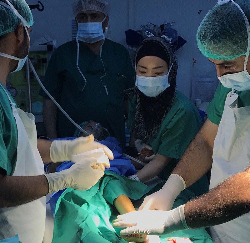 Shirakawa en 2017 durante una intervención quirúrgica practicada a una víctima infantil del conflicto bélico en la Mosul Este (Irak). © MSF.