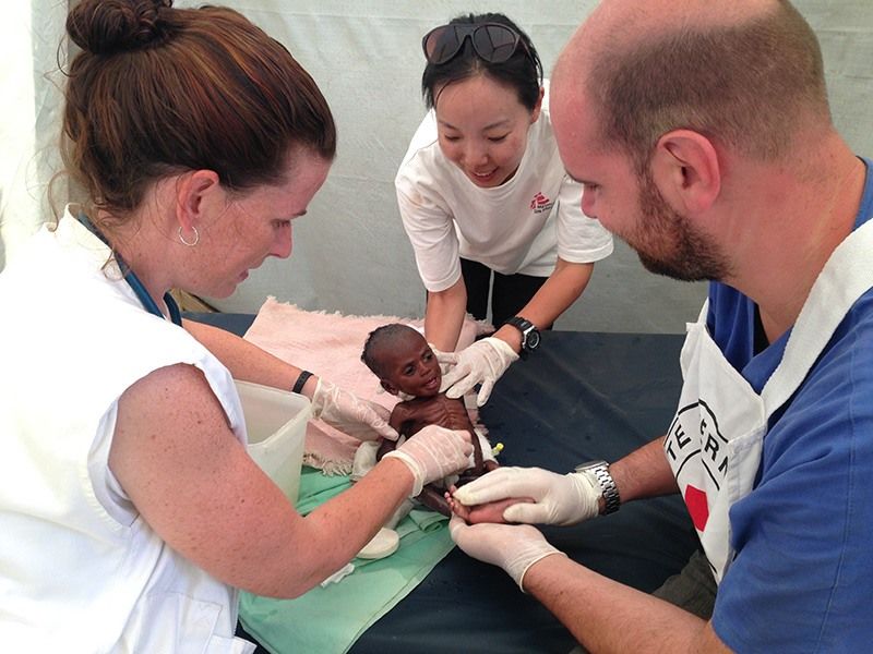 2014, Sudán del Sur. Chequeando el estado de salud de un bebé refugiado. ©MSF.