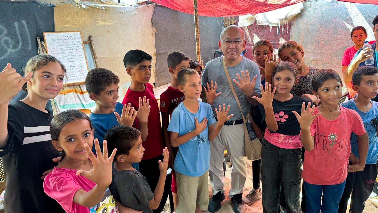 (Artículo traducido al español del original en japonés. Imagen del encabezado: el director de Salud de la UNRWA, Seita Akihiro, rodeado de niños que muestran la marca de haber completado la vacunación contra la polio en sus dedos, Deir al-Balah, Gaza, territorio palestino, 3 de septiembre de 2024 - cortesía de Seita.)