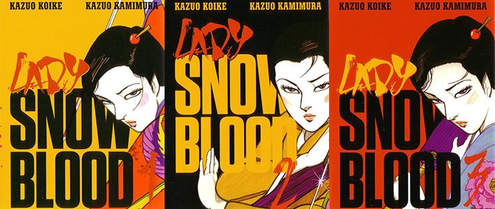 (Fotografía del encabezado: las portadas de la edición italiana de Lady Snowblood. Los colores de las portadas del primer y el tercer volumen están inspirados en los posters de las dos partes de Kill Bill, el filme dirigido por Quentin Tarantino.)