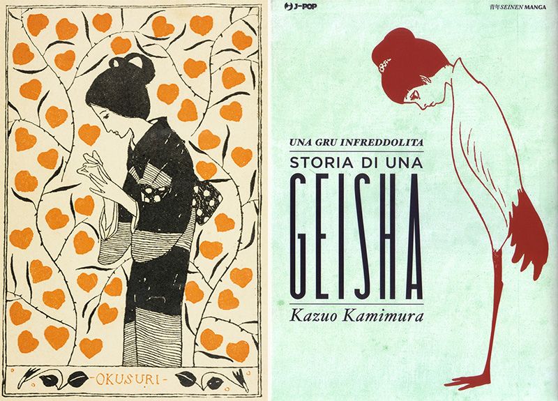 Ilustración del libro Nemu no ki de Takehisa Yumeji, y la portada en Italia de la obra Itezuru de Kamimura Kazuo.