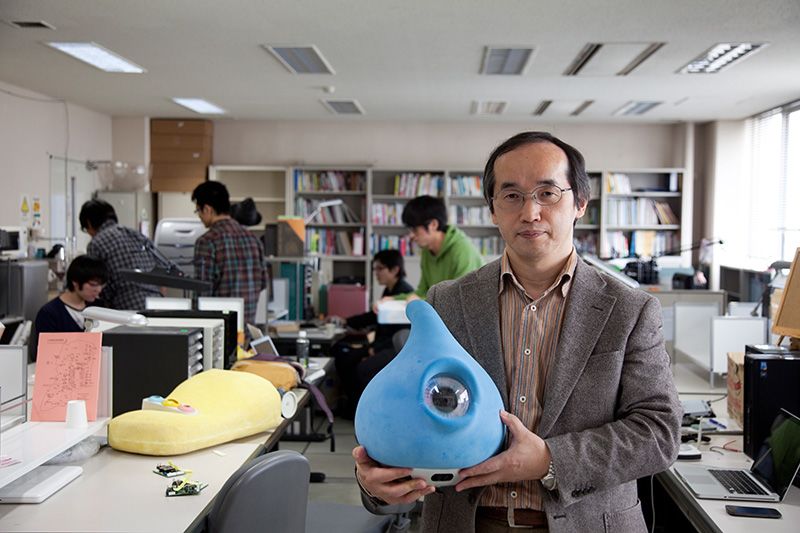 El profesor Okada, especialista en Ciencias Cognitivas desde el punto de vista de la comunicación y Robótica Social, investiga la relación entre los humanos y los robots a través de robots únicos imperfectos, como la papelera-robot.