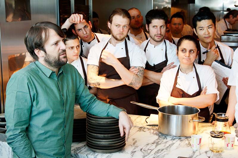 Redzepi trabaja según los lemas “Quiero hacer felices a las personas mediante la comida” y “Los cocineros también queremos disfrutar de la cocina”. Parece ser que la actitud de Noma contagió al Mandarin Oriental de Tokio: “Él transformó mi hotel”, cuenta el director Costa con una gran sonrisa. “Para empezar, a partir de las 8 de la mañana los cocineros del Noma escuchan rock a todo volumen y se ponen a trabajar con sus brazos tatuados al descubierto. Al principio los trabajadores japoneses del hotel se sintieron abrumados, pero ahora canturrean juntos las canciones de AC/DC”.