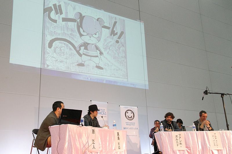 Pantherlily, el personaje del manga de Mashima Hiro aparece en la proyección durante la charla en vivo en el Festival Internacional del Cómic de Tokio.
