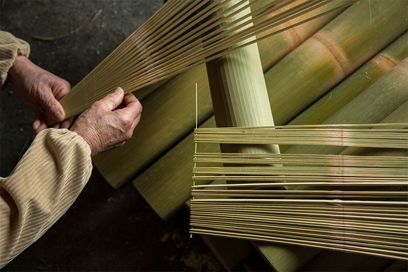 La labor consiste en pelar la caña, rebajar los nudos y después ir rajándola. Una caña de 27 centímetros de perímetro da para unas 100 varillas de 3 milímetros de grosor, suficientes para dos sombrillas janome. A diferencia de los paraguas occidentales, en las sombrillas japonesas la pantalla de papel se pliega hacia dentro. Se trata de conseguir que, una vez plegadas, las varillas retomen la forma cilíndrica de la caña. Y para eso, es necesario que las cien varillas queden en la sombrilla en la misma disposición que tenían en la caña.