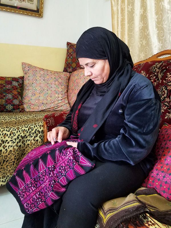 Kawther, una de las mujeres que borda para Inash al Usra. Reside en las afueras de Ramala, en Cisjordania (imagen cortesía de ICEJ).