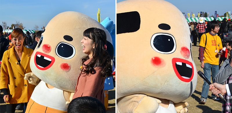 Pero la mayor estrella de la cumbre de este año, el personaje votado como el más popular, ha sido Barī-san de Imabari, en la prefectura de Ehime; un pollo descomunal con una minúscula cresta en forma de puente sobre la cabeza. Mi único encuentro con este nuevo icono fue mientras se movía, a una velocidad impresionante, hacia el escenario. La marea de fans y periodistas me echó a un lado, y apenas pude sacar unas pocas fotos.