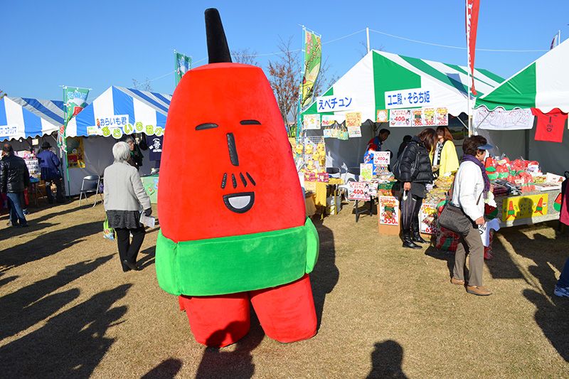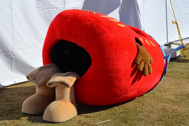 A medio camino entre un zorro y un cerdo ahumado estaba Peccary, del Museo Bizen de Arte de América Central y del Sur, en la prefectura de Okayama, acompañado del director del museo, quien llevaba un traje de la era de los descubrimientos. Esta mascota única era sin duda el bípedo más horrendo del día en Hanyū.