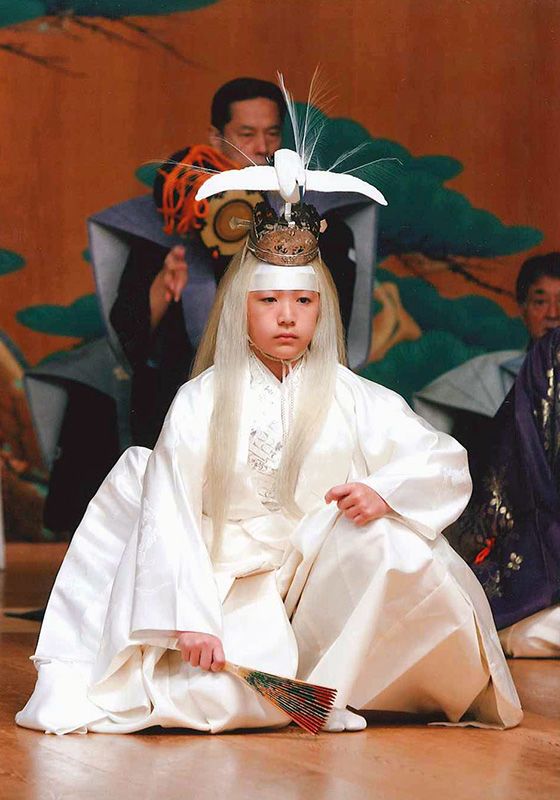 KANZE Creo que la clave reside en su color blanco. Cuando un intérprete se dispone a ejecutar La garza, sube al escenario vestido completamente de blanco, un color puro e inocente. La interpretan los niños antes de alcanzar la mayoría de edad, cuando todavía son castos, y la vuelven a escenificar en su senectud, cuando el cuerpo se ha ido apagando. No obstante, a día de hoy, los de 60 no es que se hayan apagado mucho precisamente... (risas). Mi padre lo hizo a los 10, yo a los 11 y mi hijo a los 13.