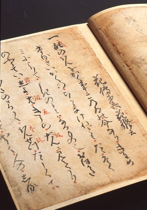 KANZE También tenemos las notas personales de Zeami, escritas de su puño y letra. Al ver los borrones de tinta en ellas, me emociono mucho imaginando en qué estado mental se encontraría cuando las escribió; también siento a mi antepasado más cerca.