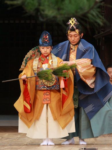 Kanze Kiyokazu y su hijo Saburōta interpretando juntos Tango mono gurui en 2009.