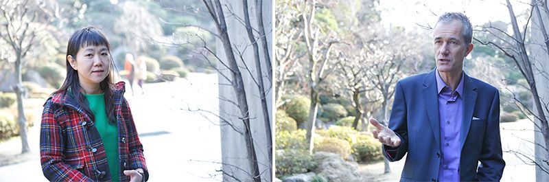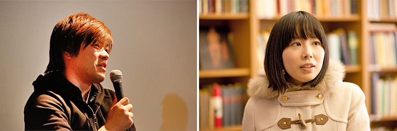 A la izquierda, la novelista japonesa Kakuta Mitsuyo, todo un éxito de ventas con obras como The Eighth Day; a la derecha, el escritor inglés Geoff Dyer, cuyo libro Pero hermoso. Un libro de jazz ha sido traducido al japonés recientemente por Murakami Haruki.
