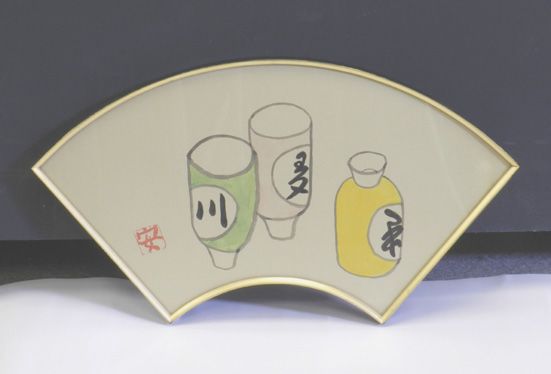 Kitagawa, pintura de Ozu en papel cartón en forma de abanico (Centro Cultural Furuishiba, distrito de Kōtō)